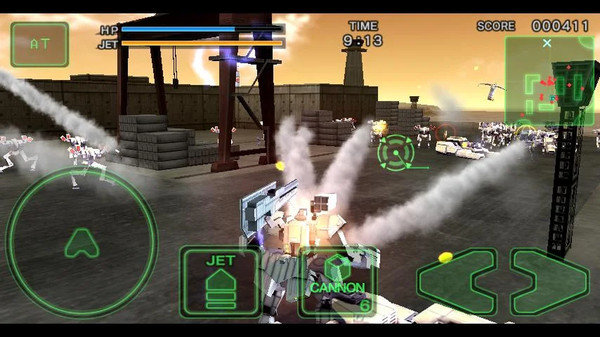 注意武器的弹药都是有限的,在游戏中玩家击杀敌人后可能掉落弹夹,捡取后可以补充弹药。另外机甲可以进行强化,增加附加武器和增强部件。武器有100毫米连射机炮、跟踪导弹发射装置和镭射光炮等等。增强部件主要是增加导弹锁定敌人的数量以及喷射气槽的回复速度等等。此外在战斗中获得的点数累计到一定数量时还会解锁新的机甲,内容十分丰富。