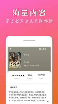 3、畅快阅读,轻快阅读,优质体验;精品书籍推荐,告别书荒。