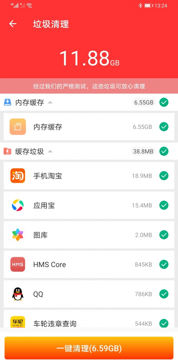 4、点击垃圾清理,实时查看手机中的垃圾数据,一键清理垃圾