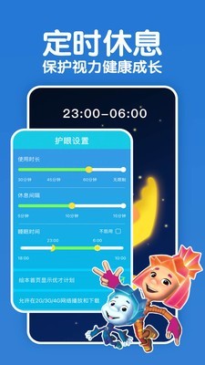 2、听书功能:家长可以设置成“单独听”(15分钟,30分钟,45分钟及不限制)让咔哒故事成为孩子睡前故事专属电台;