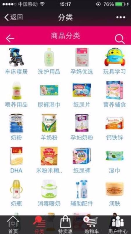 2.利用分类功能可以精准找到需要的母婴商品,自己想买什么就加入购物车之中;