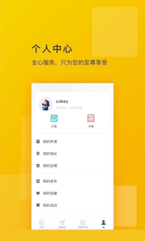 6.管理方法我的账号,对于自己的订单信息、电子券和公布、个人收藏、主题活动及其店面、详细地址和申请办理可以协同管理;