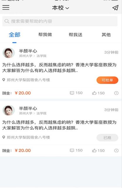 2.校园生活周边的专属的服务,线上发布各类信息,失物招领等;