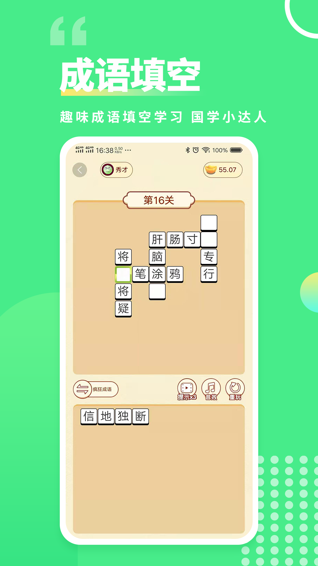 牛游果app是一款提供了音效服务的启蒙软件,软件告别传统枯燥的学习模式,学习更加的有效果。以学习国学词语填空的方式提供学习服务,根据给出的内容,选择正确的答案,就能顺利过关,并能在游戏的过程中学习到优质的知识,提升个人能力。并且,app提供了众多闯关关卡,可尽情的体验,没有任何限制,不仅可以带动孩子的学习兴趣,也可以让家长和孩子在游戏中更亲密,让孩子的学习更加的轻松,快来麦氪派下载体验吧!