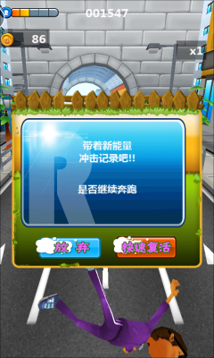 2、在途中将会看到很多金币和一些道具,玩家需要跳跃接住道具和金币,拿到更高的分数,得到奖励,还会遇到一些障碍物,能击杀的将其击杀,不能的只能跳跃躲避。