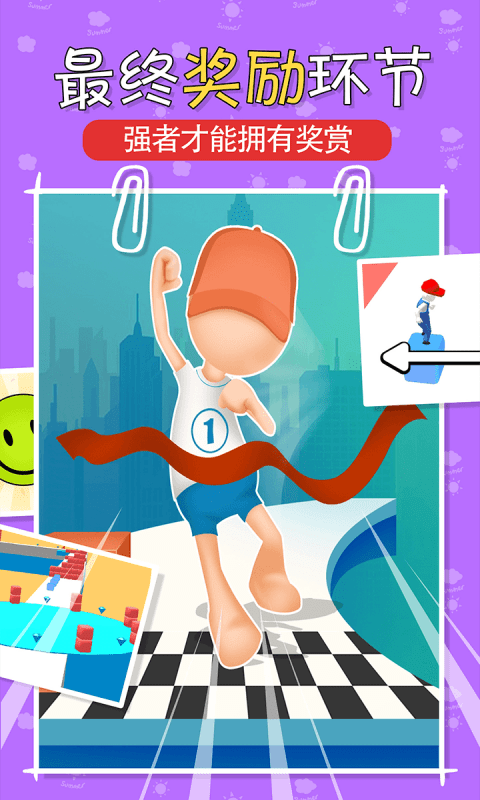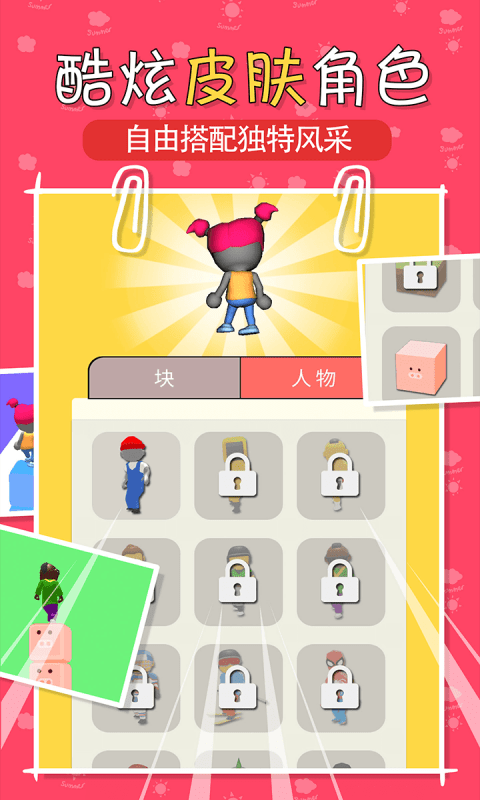 1、轻松休闲的跑酷游戏,左右移动你的小人,来收集到各种各样不同的风快,让它能够站得更高些。