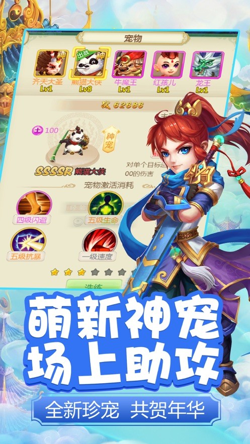 酷炫神兽坐骑幻化外观,霸道强力的神将随身护法,结下善缘,一路相随斩妖镇魔,共进取经路。