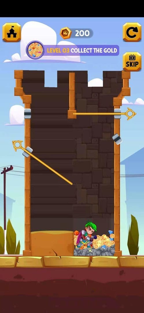 每一次别针的拉动都有可能让怪物或敌人可以攻击我们,找到正解的解救方式,不要让公主受到伤害;
