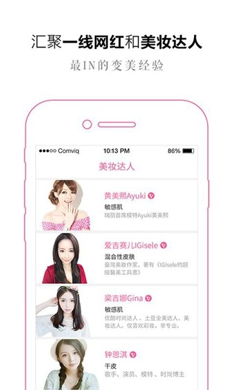 2.汇聚一线美妆达人:瑞丽首席模特Ayuki黄美熙,台湾视频达人爱吉赛尔、陈佩靖,国内一线彩妆博主梁吉娜、久久妹妹等,她们都在哟