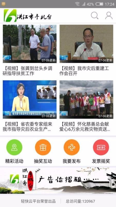 洪江市手机台是一款免费的手机电视客户端。洪江用户在手机上就可以免费观看本地卫视频道视频,支持视频边播边下载。每天定时推送最新的新闻资讯、广播电视视频资源!可以方便快捷的观看视频合集;有着界面地那波、洪江新闻报道、直播现场、直播中国等多项信息内容,而且,在视频观看的情况下,适用一边播放歌曲內容,一边缓存视频,在二次查询视频的情况下,就可以立即本地播放,不消耗一切总流量,方便快捷的观看手机本地视频;也有很多吃喝玩乐的信息内容能够查询,给你发觉更美的洪江,可以根据软件搜索到美食特色,畅快的享受。超多用户在线分享游玩攻略,各个景区都有专属游玩攻略,从各个方面为用户带来更多的生活服务,欢迎喜欢的朋友下载软件使用。
