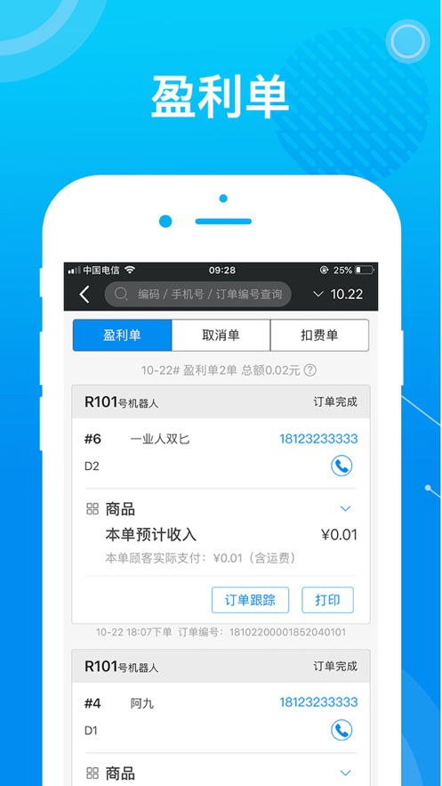 和博众机器人配套使用的商家端APP,将会大大的提高了商家管理端的工作的效率。板