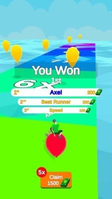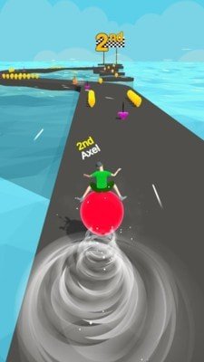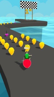 3、收集更多气球可以给自己的球加气,更快的速度冲向终点;