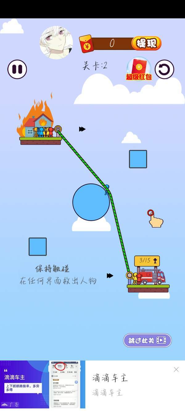 绳索益智红包版是一款玩法简单,操作方便的休闲闯关游戏,游戏中玩家能体验到久违的过关冒险世界的完美乐趣,多种不同的趣味游戏内容,经典的卡通过关游戏玩法,给你带来最棒的神奇游戏体验,轻松动手完成连接即可开启下一关拿到相应红包,闯关难度越大红包越多,空闲时动动手就能赚个几块钱,游戏的操作很简单,利用关卡中的滑轮等多种道具将绳子缠绕在上面,成功的组建救援道路帮助遇难者逃生。每通过一关可以获得现金红包,可以提现赚取生活吧,感兴趣的小伙伴可以来麦氪派下载试玩!