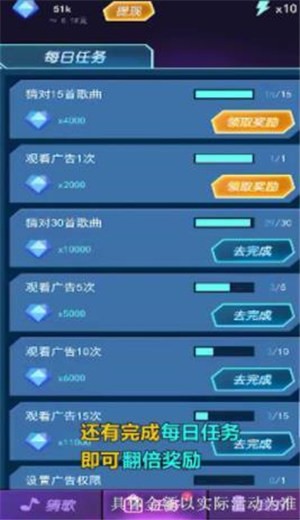 1、玩家在游戏中将扮演一名歌曲达人,然后四处挑战,展现自己不俗的音乐底蕴。