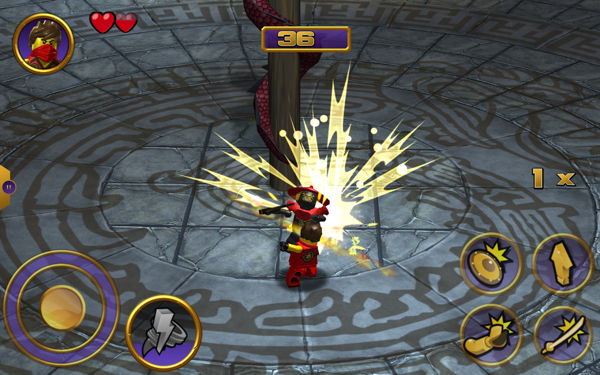 乐高秉承一贯的美术风格,游戏中到处都能看到乐高的影子:人物、机动装甲、BOSS等等。美中不足的是,游戏场景并没有选择以乐高积木的方式还原,而是选择了使用游戏常见的3D建模场景,出现了场景与乐高人物、装甲等元素格格不入的微妙情况。虽然如此,游戏的整体氛围还是能把动画中的场景和打斗效果借助屏幕表现出来。劳埃德的幻影旋风、蛇派的毒云等等都得到比较真实的还原。