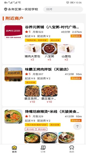2、附近商家可以自动推荐,可以凭借销量、距离筛选商家