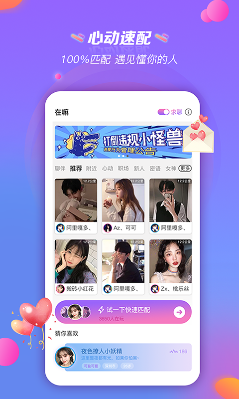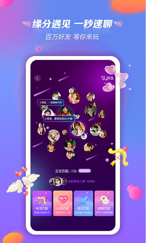 2、各位想交友的用户可以根据自己的需求一键匹配,这是一个潮玩交友平台;