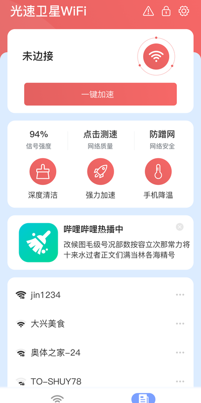 1、一键wifi管理:快速切换wifi的断开与连接,简单方便