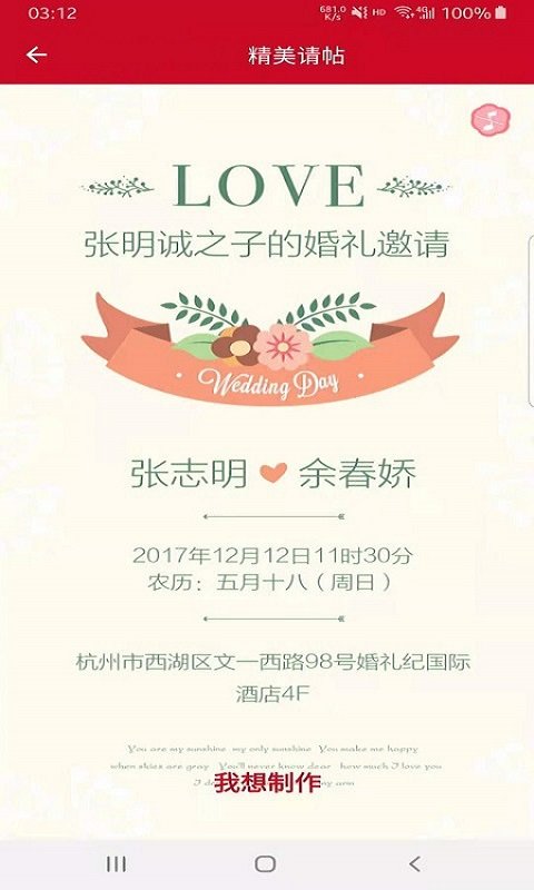 3.还可以制作各种婚礼图片以及电子请柬,各种风格轻松打造,完成属于你们自己的美好婚礼回忆。