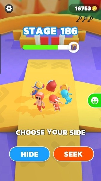 1、自由的去选择自己的角色,躲避者或者寻找者,玩法都会不同哦;