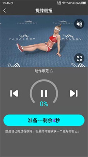 2、可以随时暂停播放,休息时暂停,开始后继续观看训练;