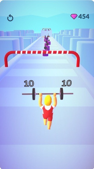 1、随机散落的杠铃等你收集,收集的越多你的杠铃重量也大,这样奔跑时面临的压力也更大;