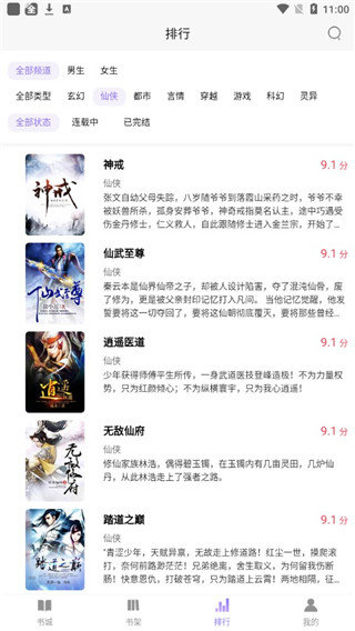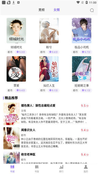 3、有特色的男频、女频推荐通道,满足不同的读者;