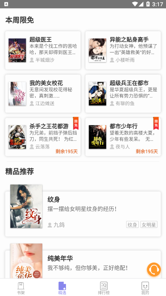 1.书城类目每周更新,新书热书天天有限免,没有书荒,追更不停歇;