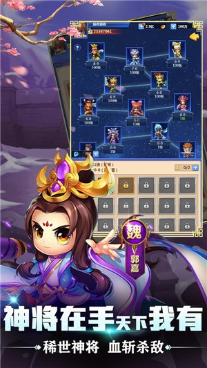 2、打怪练级,宝物随心掉,强化你的武将提升战力。