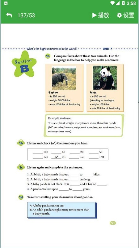 高清的全彩电子课本:可点读、连读;页面上的“所有英文”均配有中文翻译。