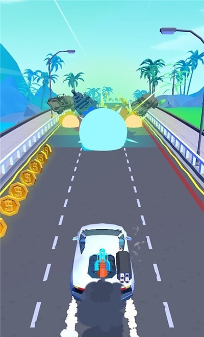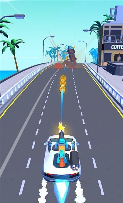2、灵活的驾驶汽车疯狂冲刺射击消灭所有敌人;