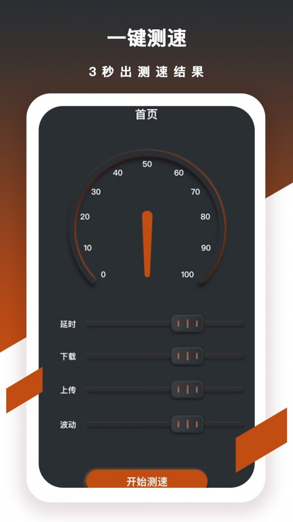 1.专业的手机网络测速软件,可以快速检测当前网络速度;