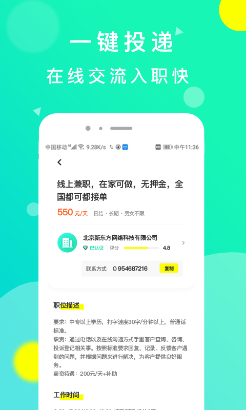 2、可以及时找到紧急和最新的职位,这里不仅有全职工作,而且还有兼职工作。