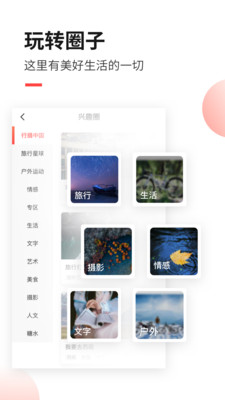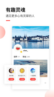 人文旅行、风光摄影、户外运动、骑行自驾、诗歌散文、艺术绘画……各种兴趣圈全部免费开放。结识同道好友,互相交流学习,作品更有机会得到达人大咖的认可与转发。 数百万作者优选的写作软件和发布平台,全力支持并保护原创内容,每个人都能拥自己的个人专栏,每篇作品都可有图片水印、超有设计感的原创标注。