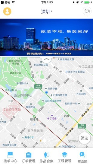 易装工作端,注册选择工人类别,工人可进行在线接单,工资一步一结,工资不拖欠,工程完工工资秒进账。管家可在线管理工地,每个施工节点清晰明确。监理负责验收工程,保证施工质量,工艺品质。
