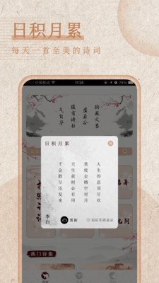 最全诗词app,是一款为大家提供古诗词学习的服务平台,种类全面,用户可以随意挑选自己感兴趣的方面进行学习。知识就是财富,学的越多,我们掌握的就越多,整个人都会感觉非常满足,充满成就感,相信一定会给你惊喜!专注于阅读与学习效率提升的工具;胸藏文墨虚若谷,腹有诗书气自华。最全诗词app内收录诗词30余万首,古典名著700来本,提供诗词学习、点评、注释等内容,同时提供诗人、文学知识、词谱、格律查询以及美文阅读等;欢迎加入最全诗词app,分享诗词之美,感受诗词之趣,感兴趣的一定要来下载试试呀,