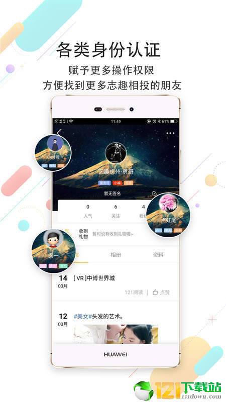 3、各类身份认证,赋予更多操作权限,方便找到更多志趣相投的好友