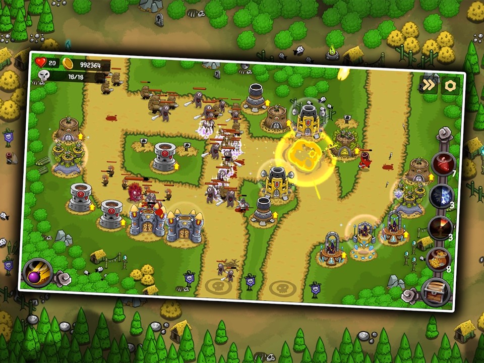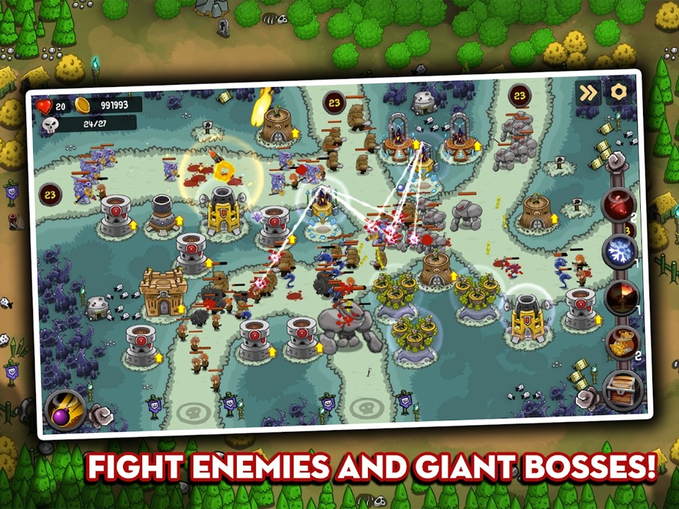 1、使用经典卡通画面演示,体验新一代塔防的乐趣,不断地让自己更强。