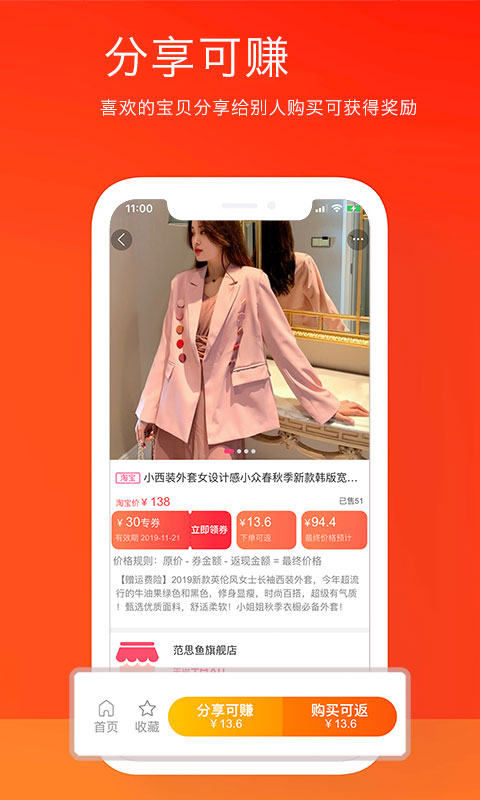3.分享商品可以赚取现金奖励,你的人脉越广,获得的返利奖励就越高哦;