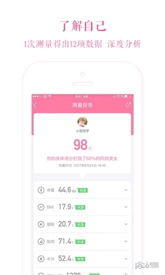 2、可以跟踪体重,BMI,体脂含量,水份含量,卡路里消耗,骨骼含量,肌肉含量,内脏脂肪等数据。