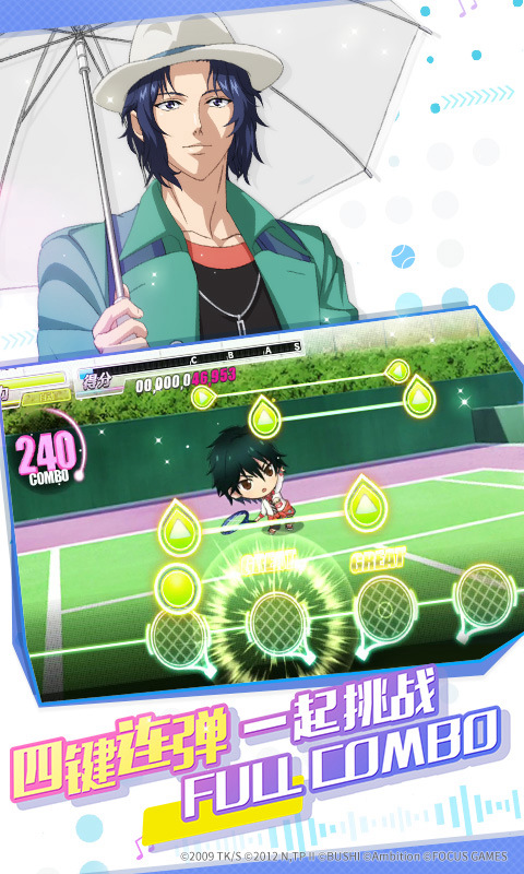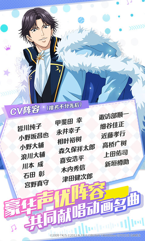 1、 选择你喜欢的王子作为你的游戏守护者,陪你一起进行愉快的网球音乐之旅。
