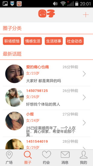 离异圈app是一款纯粹交友的离异社交软件,所有入驻用户都有着差不多类似的相同经历,彼此之间的话题会更多,也更能理解彼此,在这种氛围下的交友,增加了彼此之间的有效互动,是一款非常贴心的软件。用户可以通过这款软件找到和自己聊得来的朋友进行约会,恋爱等,帮助用户再次步入婚姻的殿堂。你可以在线的随时随地的在线搜索适合自己的另一半,帮助你成功找到自己的再婚伴侣。还可以在这里向大家寻求帮助,欢迎大家下载使用!