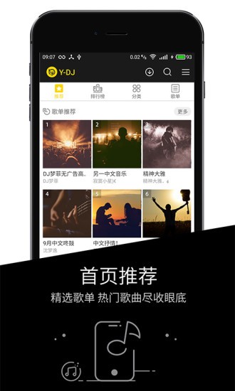 1、在首页精选各种歌单为您推送,热门DJ音乐尽收眼底,随手播放;