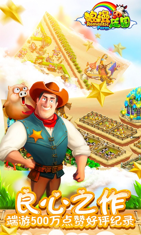 浪漫庄园是一款模拟经营类农场游戏,浪漫庄园手游首创全新天空之城农场,专属DIY建筑任你摆布,搭建属于你的庄园!史上最全装扮材料,百变布局创意装饰建筑由你做主!在这里,你可以充分发挥你的创造力,海量装饰材料和萌宠一手掌握,你梦想中的庄园就在你的手中!运用你的智慧,成为鼎鼎大名的农场大亨吧!