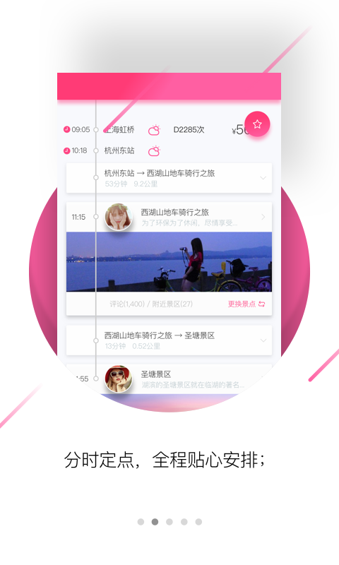 行程过程中,轻松获取城市概况、景点介绍、吃住交通、好玩周边、演出推荐,做你的随行智能导游;规划行程,地图直观呈现,还能导航哦。