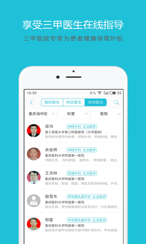 您可以选择一个就近医院的医生作为自己的专属医生,随时在线进行咨询,并预约就医。