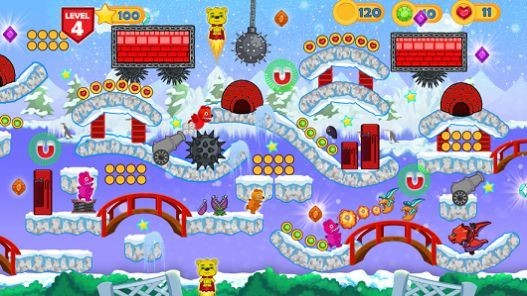 3、小熊软糖可以跳跃,移动到侧面,弯曲或翻身,以避免撞到障碍物。
