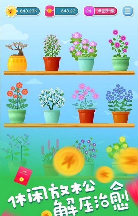 花开有宝红包版游戏是一款非常适合休闲减压来玩的模拟经营游戏,你的任务就是将一粒粒的花种子去培育成花朵,看似简单的操作,实则需要你掌握好水、肥料和阳光等等,花朵才能快速的成长,然后显得生机勃勃,去赚取更多的金钱,成为自己的零花钱,玩起来真的是超级的惬意哦!不管是在任意的时候,大家都是可以很随意的在线娱乐哦!