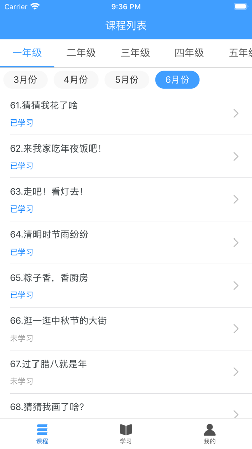 3、年级切换非常轻松,能够自如选择年级,切换到对应课程;