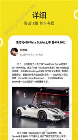 1、这是的资讯内容都是与车子相关的,所以那些爱车人士可在APP中学到很多知识;